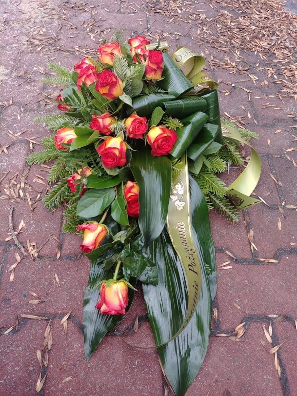 Wiązanka na florecie, na podkładzie jodłowym,  wykonana z herbacianej róży i liści aspidistry.