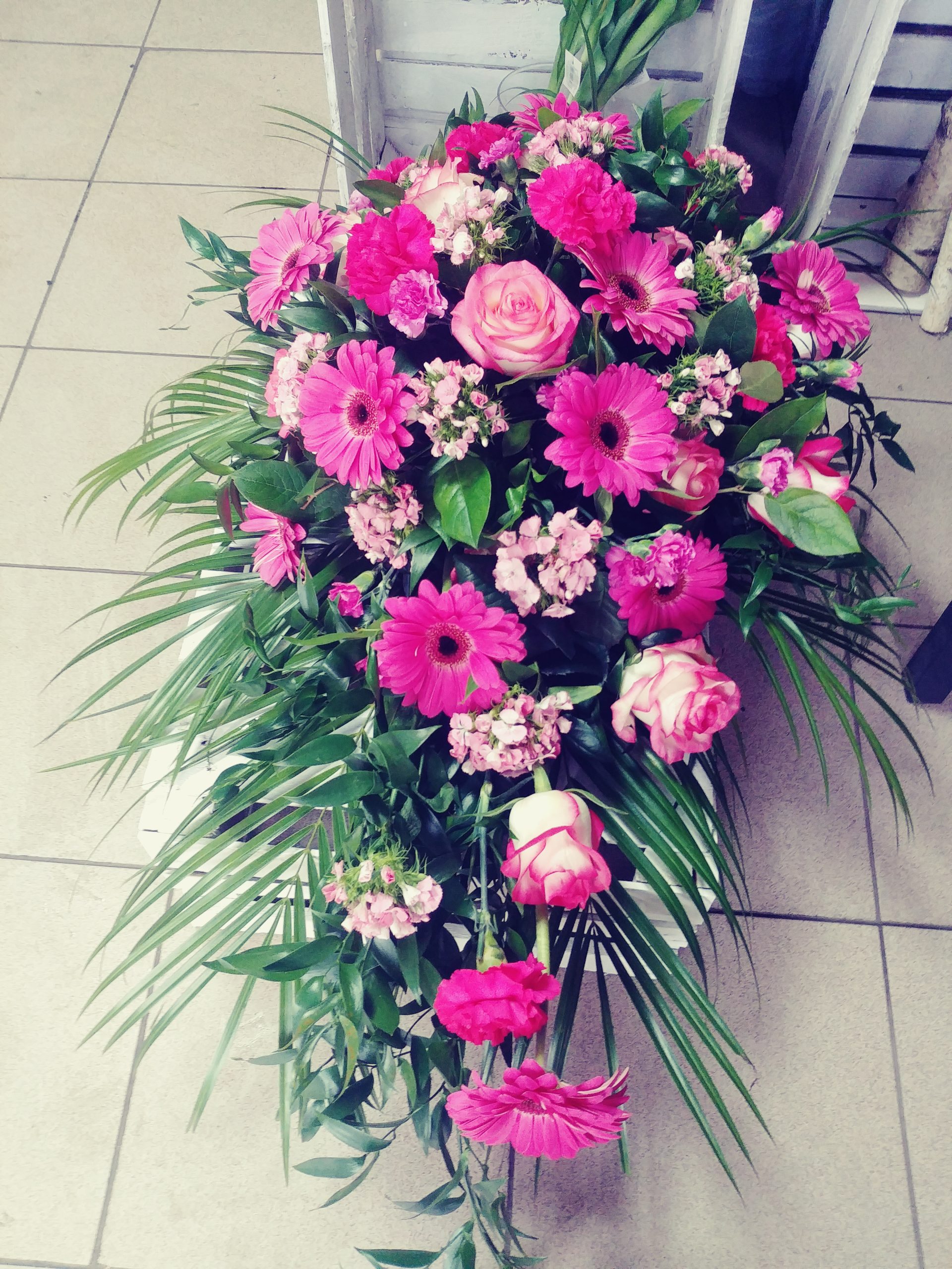 Wiązanka pogrzebowa na florecie, na podkładzie jodłowym.